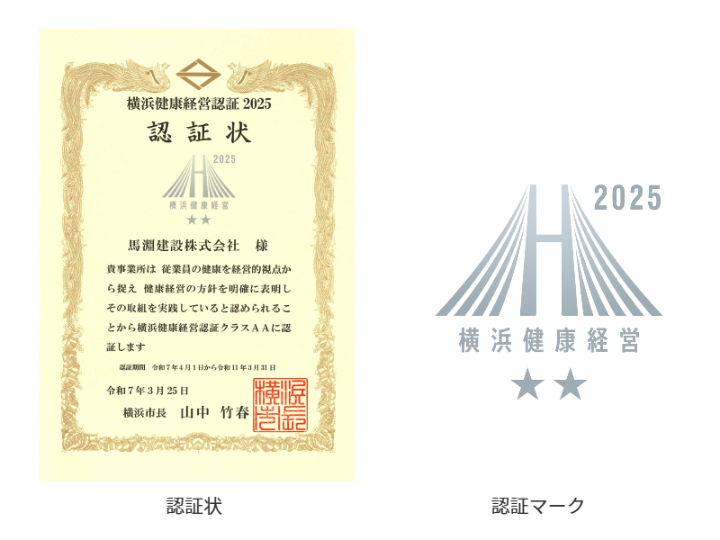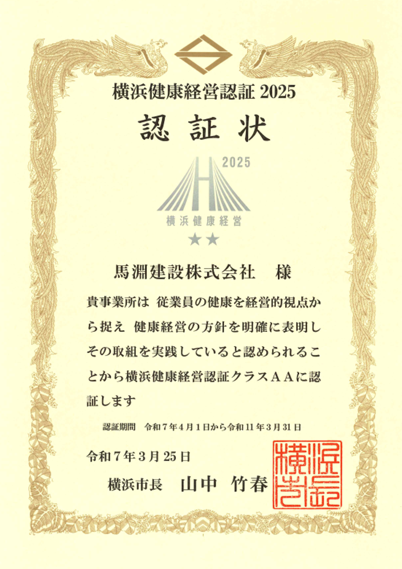 横浜市より横浜健康経営認証事業所として認証を受けました